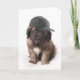 Blanco card with a sweet Leonberger dog puppy card wearing a cap.