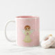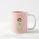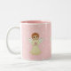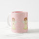 Lovely mug with three sweet little angels with star pattern on pink background.