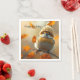 These birthday party napkins feature an adorable little bird dressed for fall and winter with a knitted hat.