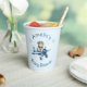 A cute teddy bear in a blue aeroplane flies through the clouds with a couple of stars overhead. All text can easily be changed to your information.