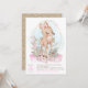 Girl deer baby shower invitation with adorable baby girl deer with cute pink bow on a pretty pastel floral and gold glitter background. This cute deer baby shower invitation is easily customised for your event.