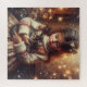 Cute nostalgic old-fashioned Christmas puzzle. A little girl holding a kitten on a snowy winter night.