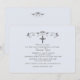 A muted, light blue background features a vintage flourish and a cross which can be dragged to any location, made larger or smaller or eliminated making this a versatile invitation.