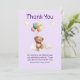 A thank you card featuring a cute teddy bear hanging on to a bunch of colourful balloons flies through the clouds with a couple of stars overhead. All text can easily be changed or deleted if you prefer a hand-written note.