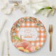 Enhance your baby shower dining experience with our Sweet Little Peach Baby Shower Paper Plates, featuring a soft peach hue and playful peach-themed accents. Perfect for serving up delicious treats with elegance and charm, these plates ensure a memorable and delightful celebration for you and your guests.