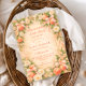 This romantic peach garden collection features soft watercolor peaches, blush florals, and delicate ribbon bows arranged in an elegant vintage-style frame. The warm pastel palette and airy botanical details create a timeless, feminine look that feels both sweet and refined. Perfect for a peach-themed celebration, this design pairs beautifully with garden, cottage, and storybook-inspired baby showers.