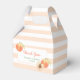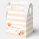 Kids birthday favour box features cute watercolor peaches on peach colour stripes background.