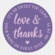 Sweet Love & Thanks Lavender Purple Simple Script Classic Round Sticker
