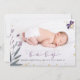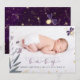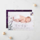 Share the joy of your new arrival with this enchanting birth announcement! Featuring a precious baby photo, delicate butterflies, and shimmering gold accents on a deep purple background, it's a beautiful way to introduce your little one.
