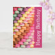 A tower of colourful macarons displayed artfully in a bakery window. The front says Happy Birthday against a pretty pink background. The inside text says Hope your birthday is so sweet it makes you dizzy. You can personalise it with your own words if desired. This is a fun card to give to someone who has a love of this meringue confection.