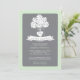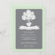 A lovely white mason jar illustration overflowing with white hydrangea flowers and a little heart tag that reads, "baby". All in a gender neutral colour scheme of soft mint green and dove grey, this Baby Shower invitation is sure to please and is beautiful for a rustic chic country shower, garden party, or popular mason jar themed shower.