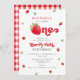 This birthday invitation is the perfect announcement for your little one’s "Berry first Birthday," showcasing an adorable theme that’s sure to entice friends and family to join the celebration. The main attraction of the invite is the creatively designed "one," playfully integrated with a juicy strawberry to symbolise the 'berry' special first year. Above the number, the invitation proudly announces your little one "is a sweet one," inviting guests to share in the joy of this milestone. The charming design features a scattering of vibrant, juicy strawberries, which seem to dance around the words, adding a touch of whimsy and sweetness to the invite. The details of the event are neatly laid out below the central graphic on a clean white background that makes the red of the strawberries and the text pop, creating an inviting and cheerful look. The reverse side complements the front with a classic red and white gingham pattern, further accentuating the berry theme and adding a picnic-like charm to the overall design. Designed with attention to detail, this invitation is not just a call to a party but also a lovely keepsake that encapsulates the essence of a joyful first birthday celebration.