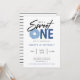 He's a Sweet One, 1st birthday invitation. Cute blue doughnut, trendy blue and black typography design. Back of card features coordinating black stripe pattern.