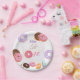 Pink colour Sweet one birthday Paper Plate is a cute design with sweet doughnuts for baby girls.