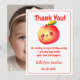Celebrate a successful celebration with this adorable fruit-themed birthday thank you card. Featuring a watercolor kawaii peach with a sweet smiling face, this design brings a cheerful orchard vibe to your stationery. Perfect for parents looking to send a heartfelt note to friends and family after a "Sweet One" or summer-themed first birthday party.