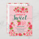 Sweet One Pink Strawberry Cute 1st Birthday Party Invitation Postcard.