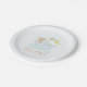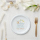 Whimsical and sweet paper plates design features an adorable vector illustration of a cute brown baby bear inside a light blue paper boat. Stars and moon on a very light blue decorate the background. Personalise them with your custom message and use them for baby showers, baby's first birthday party, Christenings, Baptisms, and much more!