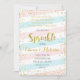 Pink, blue, white baby sprinkle invitation with gold confetti. Lovely and sweet!