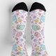 Sweet Pastel Kawaii Cat and Spring Floral Pattern Socks