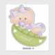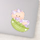 Sweet pea in pod baby girl in lavender and name Sticker. This cute design includes a sweet baby girl with lavender purple and white gingham pattern clothes a bow and pacifier. It is placed in a green pea pod with name and two white hearts.