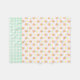 Sweet peaches, white retro flowers, and light green gingham