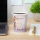 Elegant paper cups featuring a lilac with peach design with lace and polka dots and a cute teddy bear. Beautiful for a baby shower.