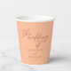 Peach is the new trending colour for summer brides. Our sweet peach wedding paper cup features elegant light brown script for a trendy, minimalist event in the afternoon for a feminine bride who loves to stay current and modern with her reception decor.
