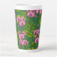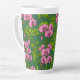 Sweet peas and bumblebees, green and pink latte mug