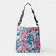 Sweet peas and bumblebees, pink and blue crossbody bag