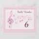 This wedding reception table number postcard is decorated with a pink musical scale and sweet pea flowers. For the complete wedding collection go to http://www.zazzle.com/zookies/collectionsrecption