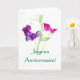 A pretty birthday card with purple and pink sweet peas, from a watercolour painting by Judy Adamson. The greeting, in green lettering, is in French. Other languages and products with this design also available.