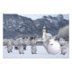 funny hybrids between penguins and elephants having fun on a nice winter day, playing in the snow - one got stuck in a huge snow ball. background shows Unken in Salzburg, Austria