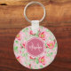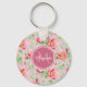 Sweet Pink Apple Blossom Floral With Monogram Key Ring