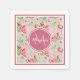 Pink and green floral paper napkins with apple blossoms. Personalise this sweet spring floral design by adding your name and monogram initial to the deep pink octagon badge. This is part of the Apple Blossom Floral Rapture Rose Monogram Collection.