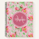 Sweet Pink Apple Blossom Floral With Monogram Notebook