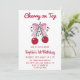 Sweet Pink Bow Cherry on Top 1st Birthday Invitation