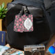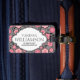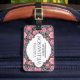 Add your first and last name, and contact details to create your personalised bag tag! Retro style doodle flower patterned print in pretty shades of pink with black leaves and stems on a grey background, and a fancy and feminine sophisticated label graphic with three customizeable text fields just waiting to be made just for you! Add some pizazz and show off your wild side with this cool personalised luggage tag for ladies.