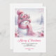 Sweet pink snowman Christmas kids card editable