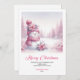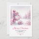 Sweet Pink Snowman Printable Festive Scene Greetin Holiday Card