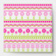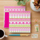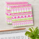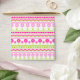 Gorgeous, colourful design featuring retro style drawing of flower garden, dots, stripes and zig-zags on a light background. Modern and retro pattern in pink and green. Sweet, elegant and stylish gift for every woman.