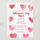 Sweet Pink Watercolor Hearts Galentine’s Day Party Invitation