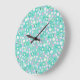 Sweet Pink White Teal Ditsy Floral Pattern Large Clock