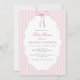Sweet Pinstriped Pink Bow Baby Shower Invitation
