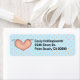 Pretty return address labels done in light blue with coral coloured tiny polka dots. A charming coral and white polka dot heart decorates the left side of the label. Black text is ready to personalise for your every day use or special occasions.