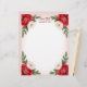 This stationery has bright red and white flowers with green leaves in the corners, on a linen-colored background. The back is a darker linen color, and plain. Very elegant and feminine.