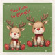 Sweet Reindeer Pair in Holiday Snowfall Glass Coaster