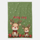 Sweet Reindeer Pair in Holiday Snowfall Tea Towel