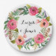 Rose and pink coloured watercolor flowers with dabs of peaches and cream and a just a pop of lavender. Green leaves compliment the flowers. These cheerful paper plates have a bright white background and dark charcoal grey text (you can change the colour). Soft, flowing, romantic design makes for a lovely place setting for your wedding shower, anniversary or other special occasion. Easily change the wording to match your special occasion.