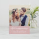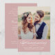 Announce your marriage with soft warmth and invite loved ones to your wedding reception with this rose pink calligraphy photo invitation. A gentle rose pink banner features "Announcing" in flowing white script with names, date, and ceremony location. The back provides full reception details including venue, time, and RSVP information. Add your own photo and personalise every text element.