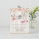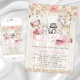 Rustic woodland girl baby shower invitation with beautiful pink and gold watercolor flowers and adorable woodland fox, deer, raccoon, rabbit, owl and squirrel on a rustic wood background. This adorable girl woodland baby shower invitation is easily customized for your event by simply adding your details, and you can choose a watercolor or wood background for the back side.